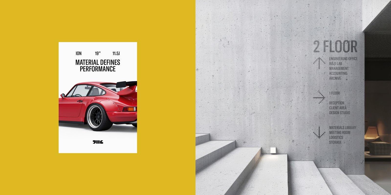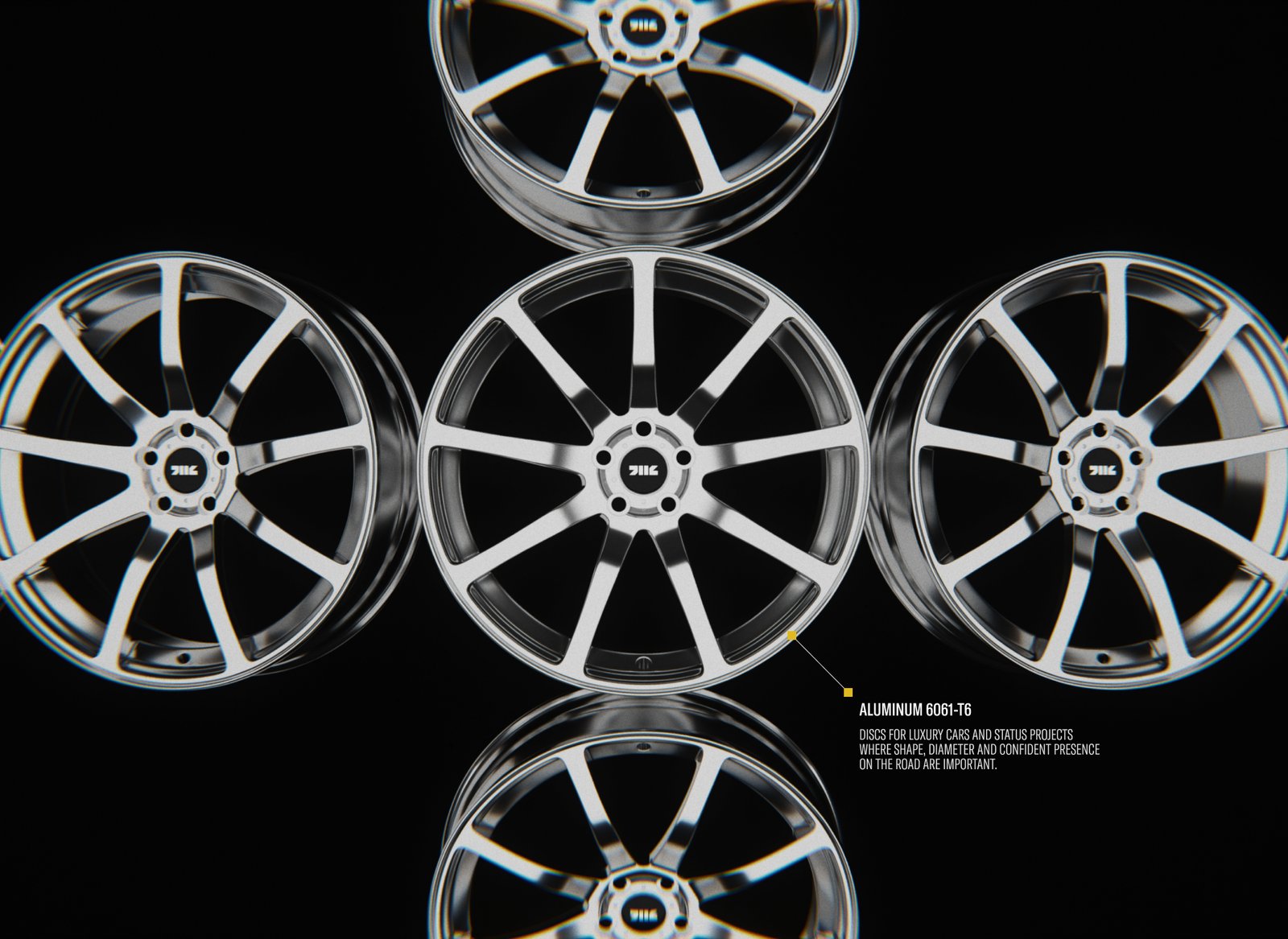 Inspired by key automotive elements, its form reflects wheel diameter, inch-based measurements, and tire tread patterns. The visual identity integrates a powerful, high-tech aesthetic with clean and minimalistic design elements. Sustainability was a major focus, with 75% of materials sourced from recycled aluminum, magnesium, and titanium, significantly reducing the carbon footprint. The packaging was engineered for minimal waste, reducing transport emissions by 15% and eliminating unnecessary chemical coatings.